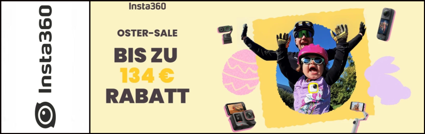 Bis 4. April 2026 läuft bei Insta360 der Oster-Sale. Fünf Kameras aus dem aktuellen Sortiment sind dabei besonders relevant für Motorradfahrer - vom günstigen Einstieg mit Leica-Optik bis zum 360-Grad-Flaggschiff. Weil eine Kamera allein aber noch keine Motorrad-Aufnahmen macht, haben wir drei Budget-Pakete zusammengestellt: Kamera plus Montage-Zubehör, direkt fahrbereit.